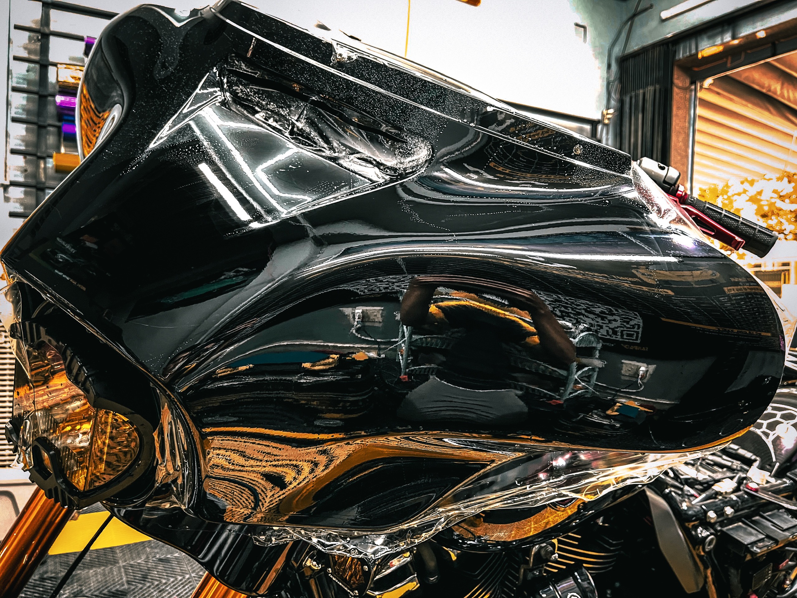 Xe sẽ được vệ sinh kỹ lưỡng để đảm bảo bề mặt hoàn toàn sạch sẽ, giúp lớp decal dán chặt và bền hơn.