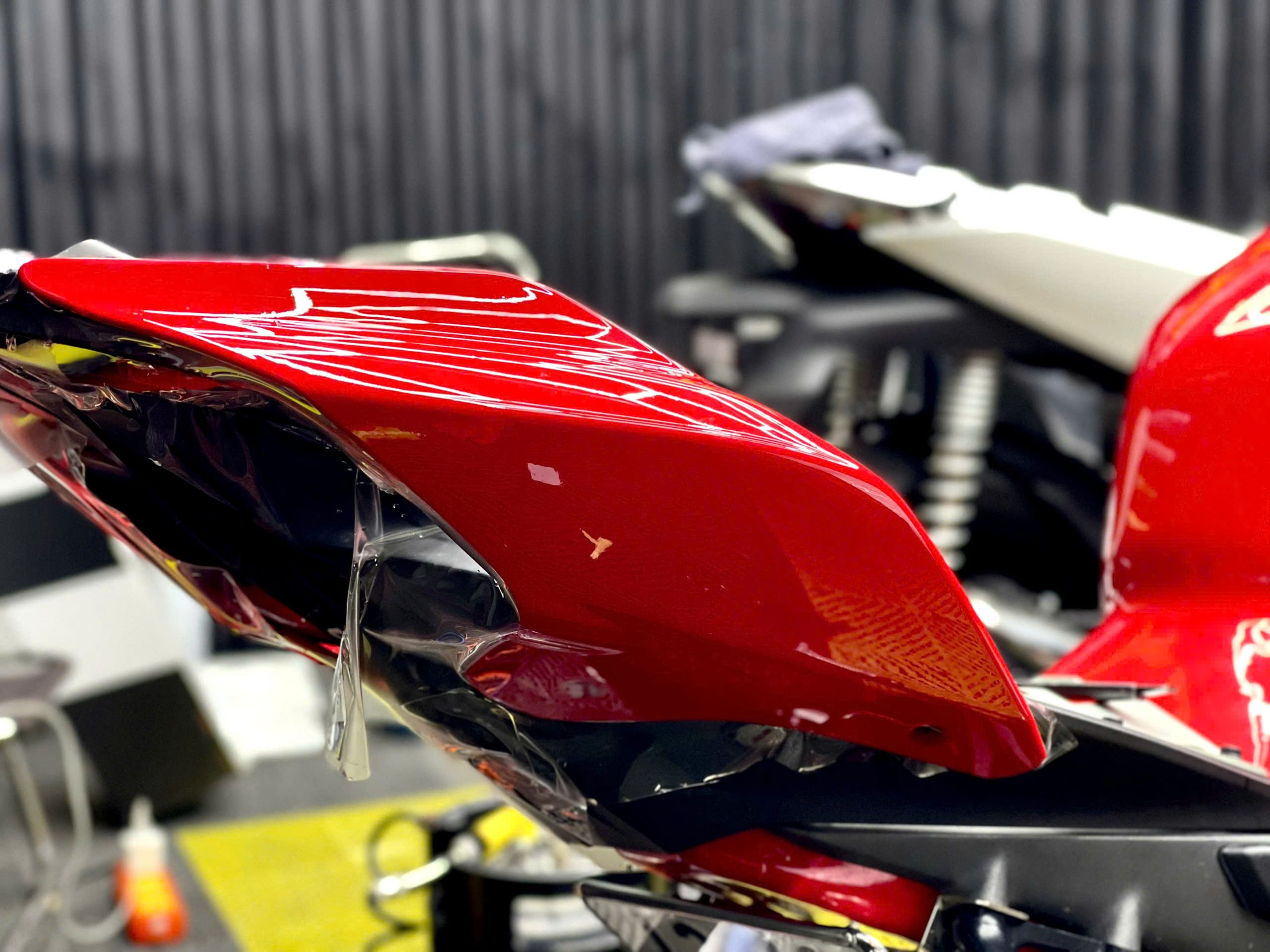 Xe sẽ được vệ sinh kỹ lưỡng để đảm bảo bề mặt hoàn toàn sạch sẽ, giúp lớp decal dán chặt và bền hơn.