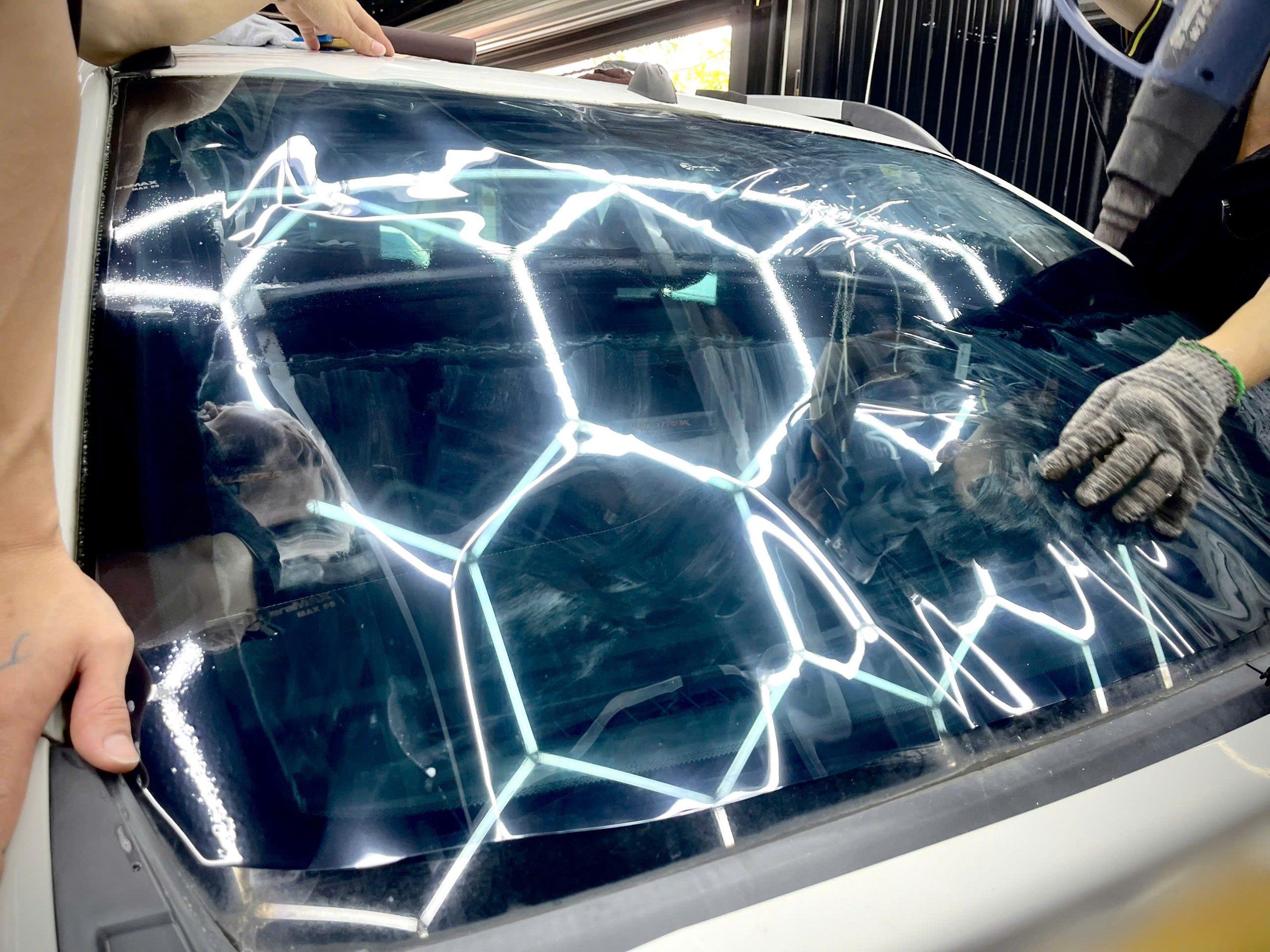 Chuyên gia sẽ tiến hành dán decal cho từng phần của xe, từ nóc xe, thân xe đến tem sườn, đảm bảo mọi chi tiết đều hoàn hảo.