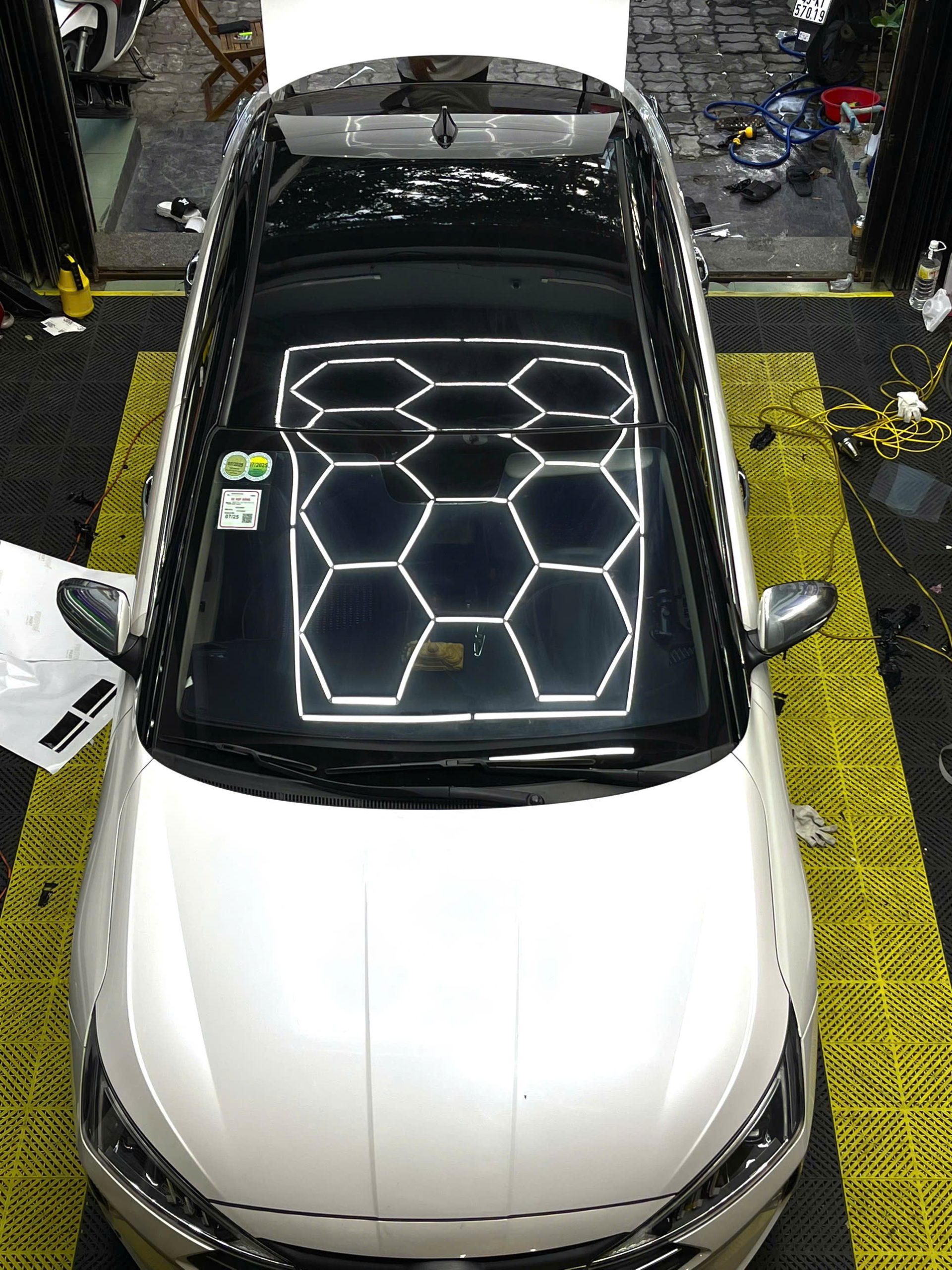Chuyên gia sẽ tiến hành dán decal cho từng phần của xe, từ nóc xe, thân xe đến tem sườn, đảm bảo mọi chi tiết đều hoàn hảo.