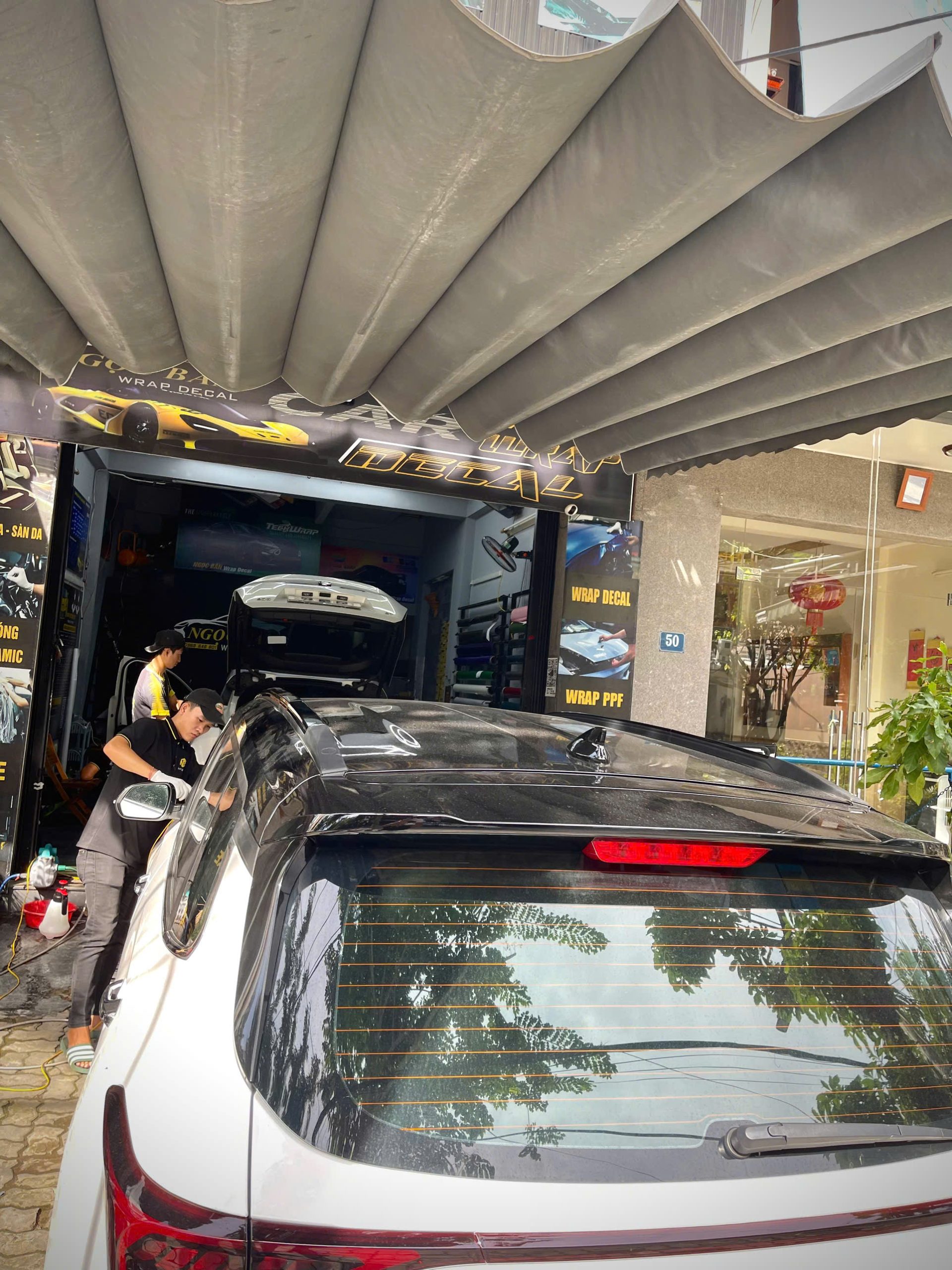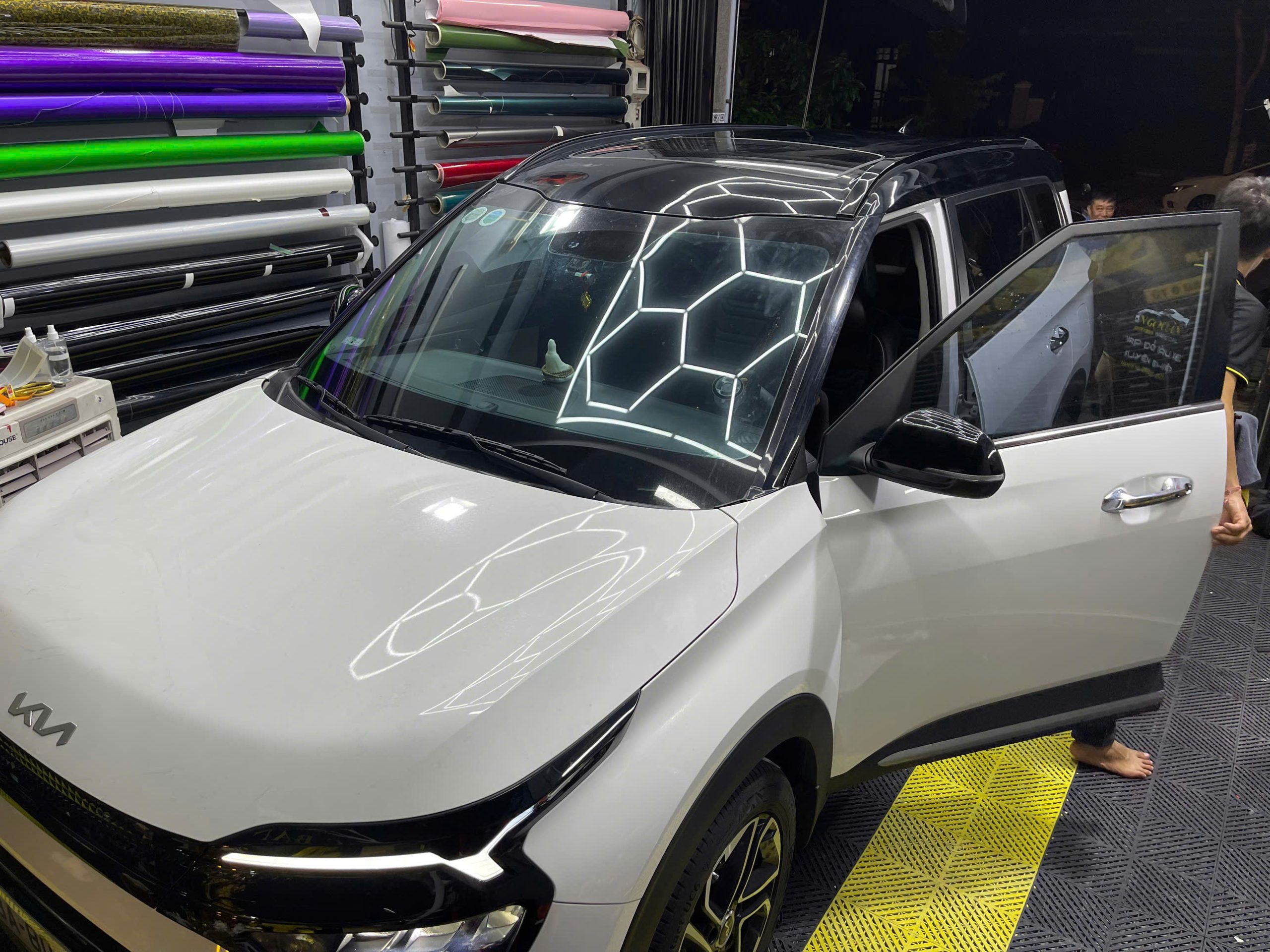 KIA CARENS dán trần đen siêu bóng + kết hợp đèn hậu khói mờ và chi tiết crome chuyển đen / Được thi công bởi Team Ngọc Bàn Wrap Decal