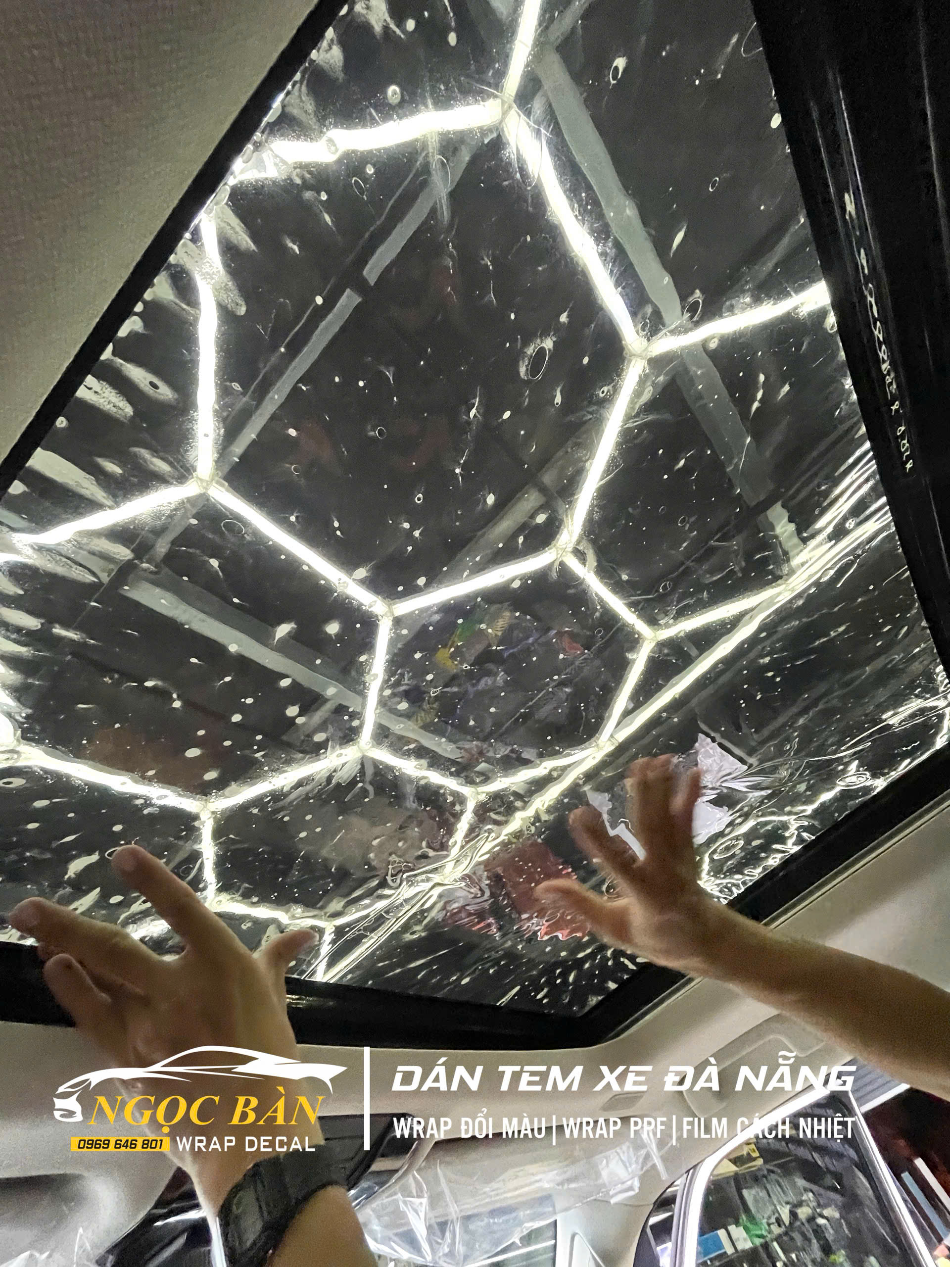 Chuyên gia sẽ tiến hành dán decal cho từng phần của xe, từ nóc xe, thân xe đến tem sườn, đảm bảo mọi chi tiết đều hoàn hảo.