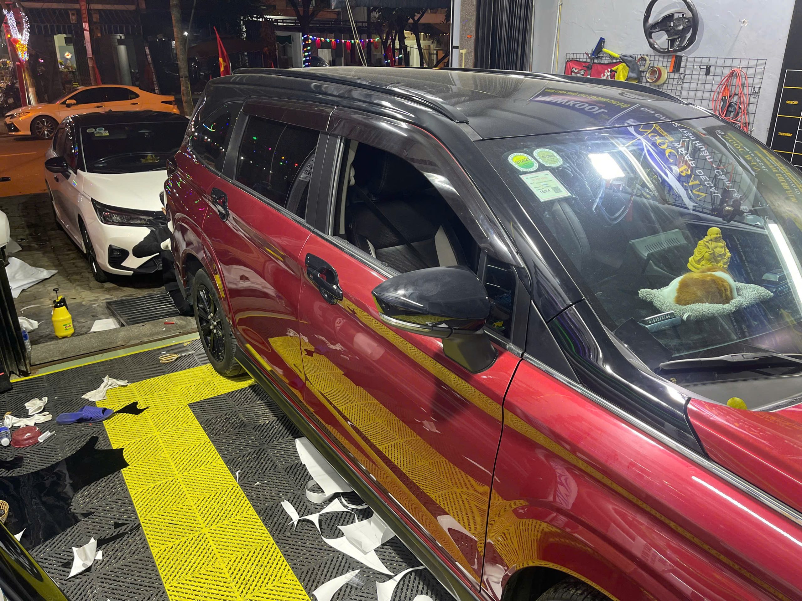 Chuyên gia sẽ tiến hành dán decal cho từng phần của xe, từ nóc xe, thân xe đến tem sườn, đảm bảo mọi chi tiết đều hoàn hảo.